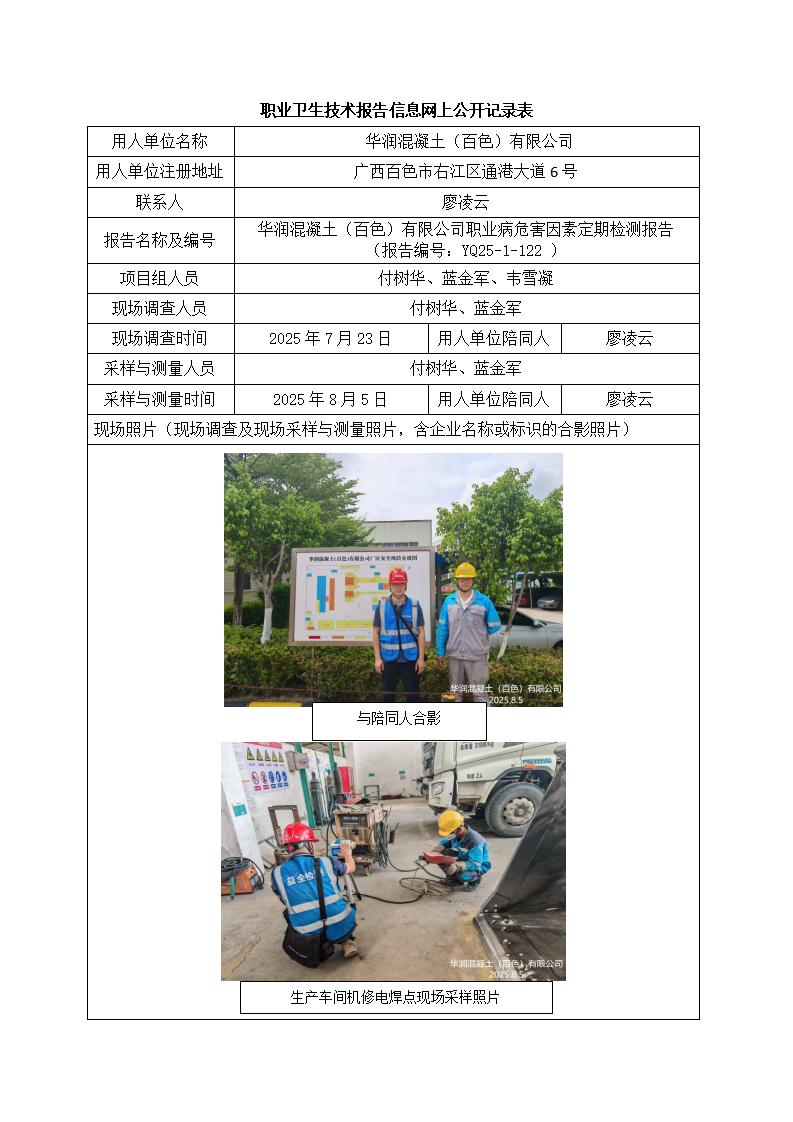 華潤混凝土(百色)有限公司職業病危害因素定期檢測